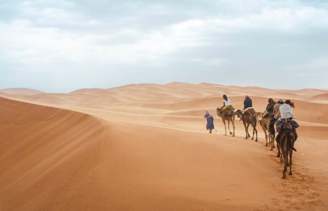 Your day starts with a visit to Khamlia village to experience its music and lifestyle. Explore the Merzouga lake with its bird populations, including flamingos, and visit a Berber nomad wire house offering local handicrafts. In the afternoon, embark on a camel ride led by an experienced guide, delving into the mysterious Erg Chebbi sand-sea. Spend the night under the stars or in a traditional Berber nomad tent, with dinner served in the tent.